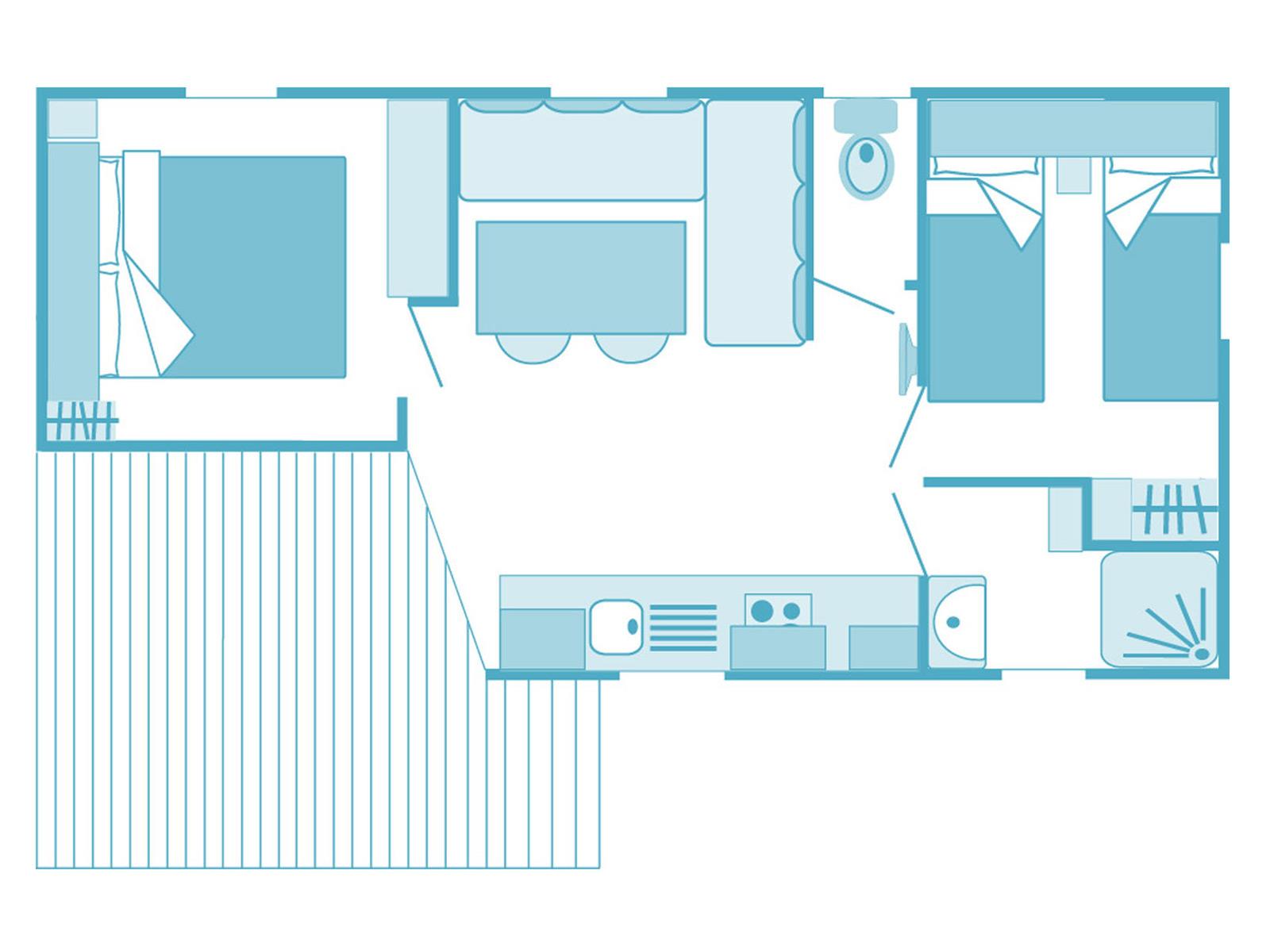 Mobil-home Prestige 2ch 5pers air con 32m²