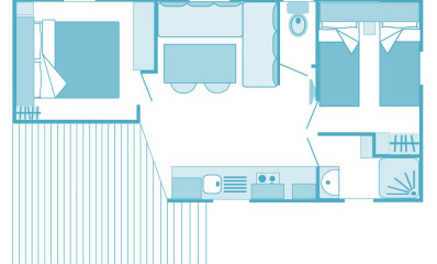 Mobil-home Prestige 2ch 5pers Clim 32m²