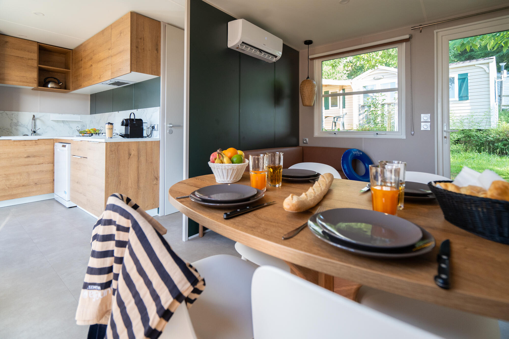 Découvrez notre mobil-home de dernière génération, situé dans un quartier piétonnier verdoyant à proximité du lagon, avec une large gamme de services inclus. Tout est prévu pour que vous passiez des vacances agréables. Voici un aperçu de l'équipement de cette location pour vous aider à organiser votre séjour. Nous restons à votre disposition pour toute information supplémentaire.