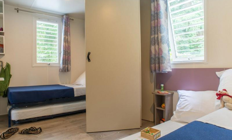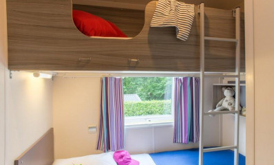 1 slaapkamer met 2 eenpersoonsbedden (80x190 cm) of 1 stapelbed afhankelijk van het model