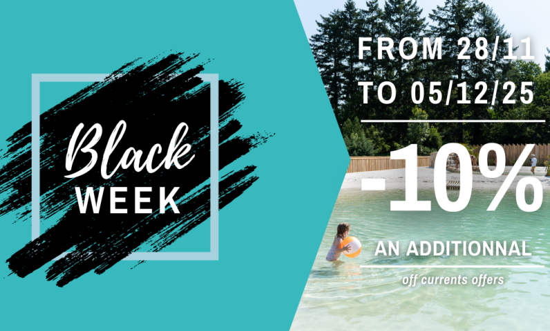 Voor elke reservering vanaf 7 nachten in verhuur of op kampeerplaatsen, profiteert u van 10% extra korting op onze lang verblijfsaanbiedingen die al op hun plaats zijn en cumulatief met de vroegboekaanbieding!